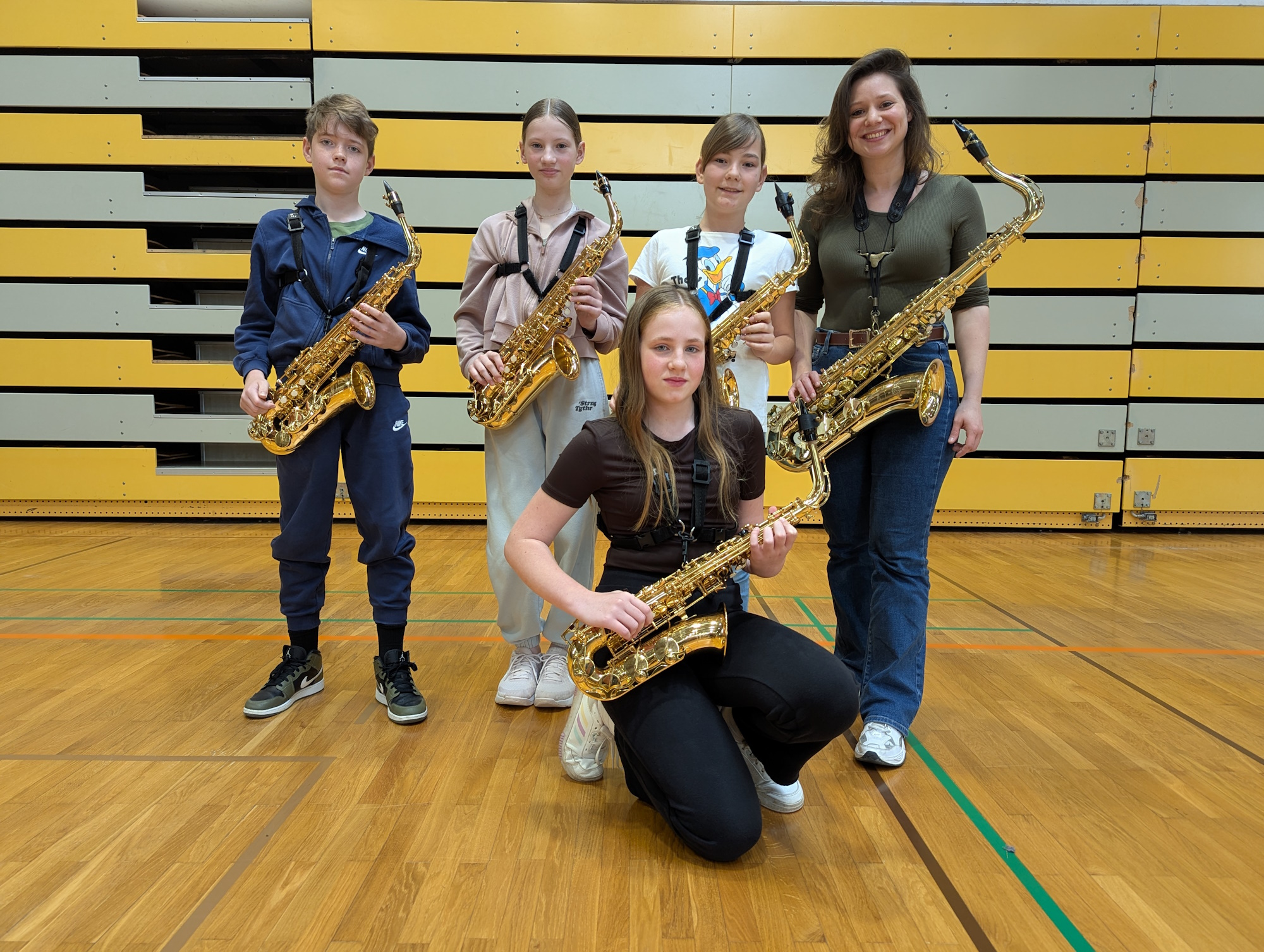 Razred saksofonov v šolskem letu 2024/25 zajema 18 učencev, ki jih poučuje Eva Saje na treh enotah. Saksofonisti igrajo v raznih komornih zasedbah ter šolskem pihalnem orkestru.